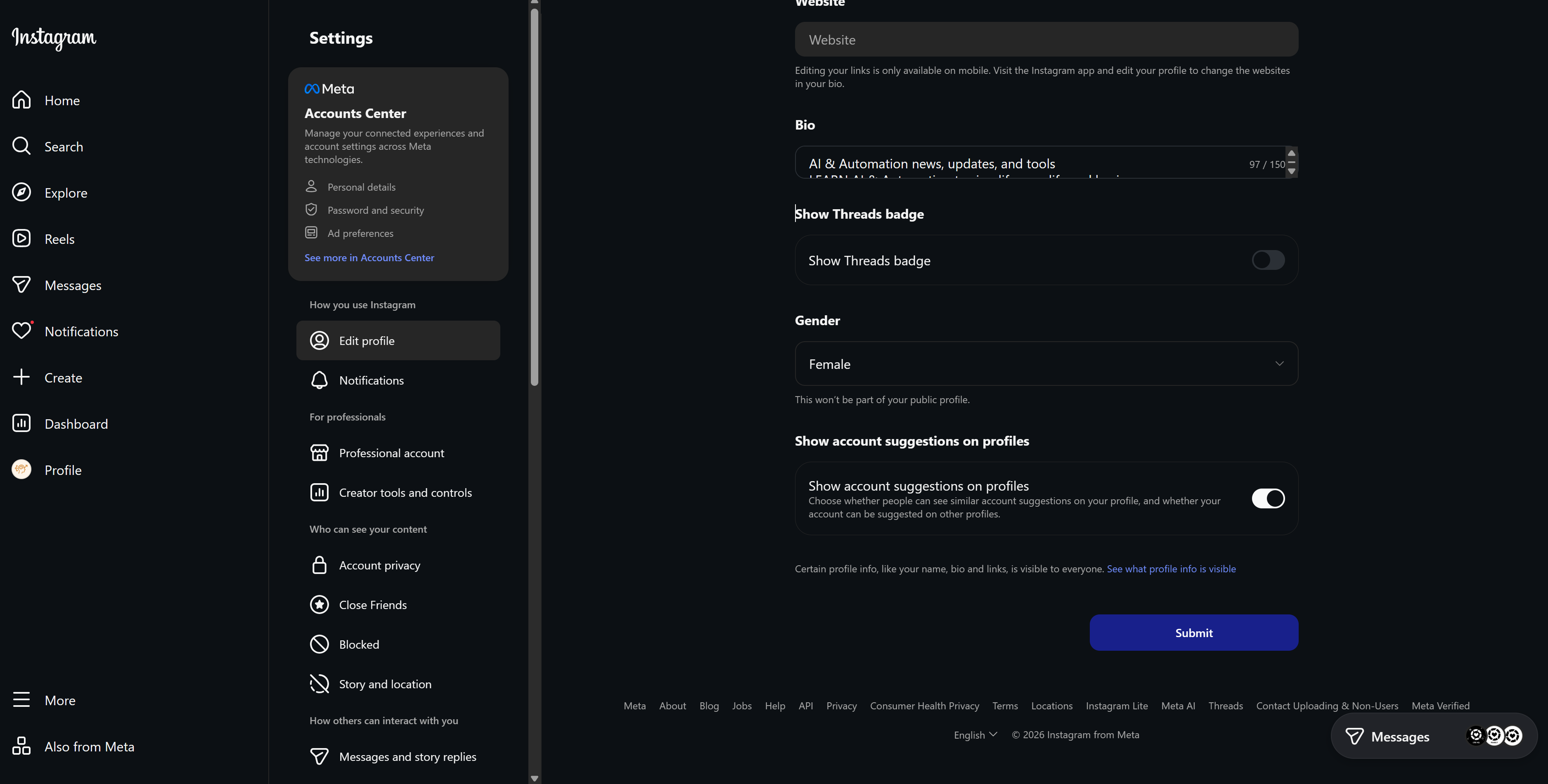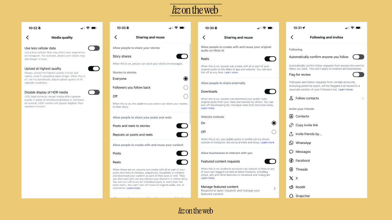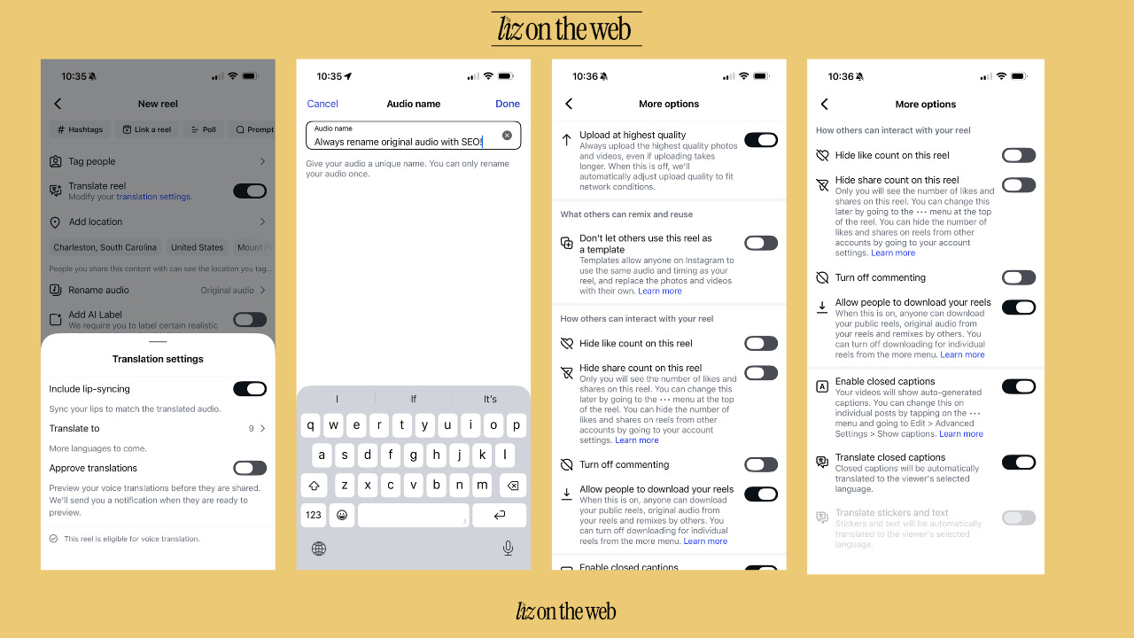 Semi-secret settings (these are only accessible from when you are posting a reel, but some of these settings govern all content, such as translations and closed captions). Translations and closed captions are some of the MOST important settings for reach!