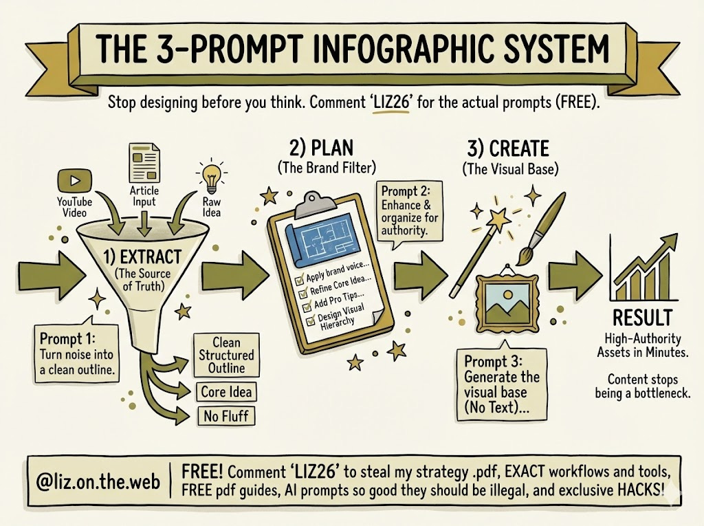 Below is a 3-prompt system that turns any input into a high-authority infographic in minutes.